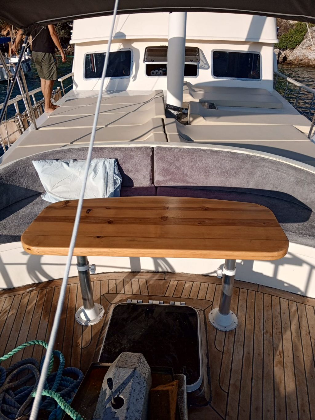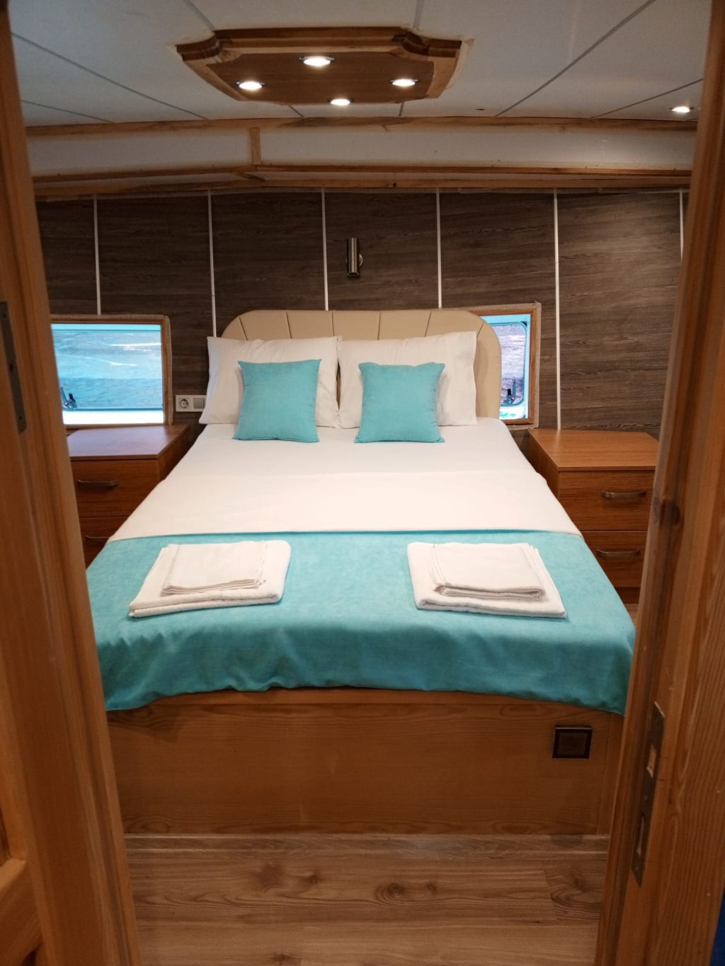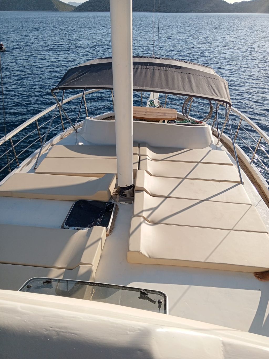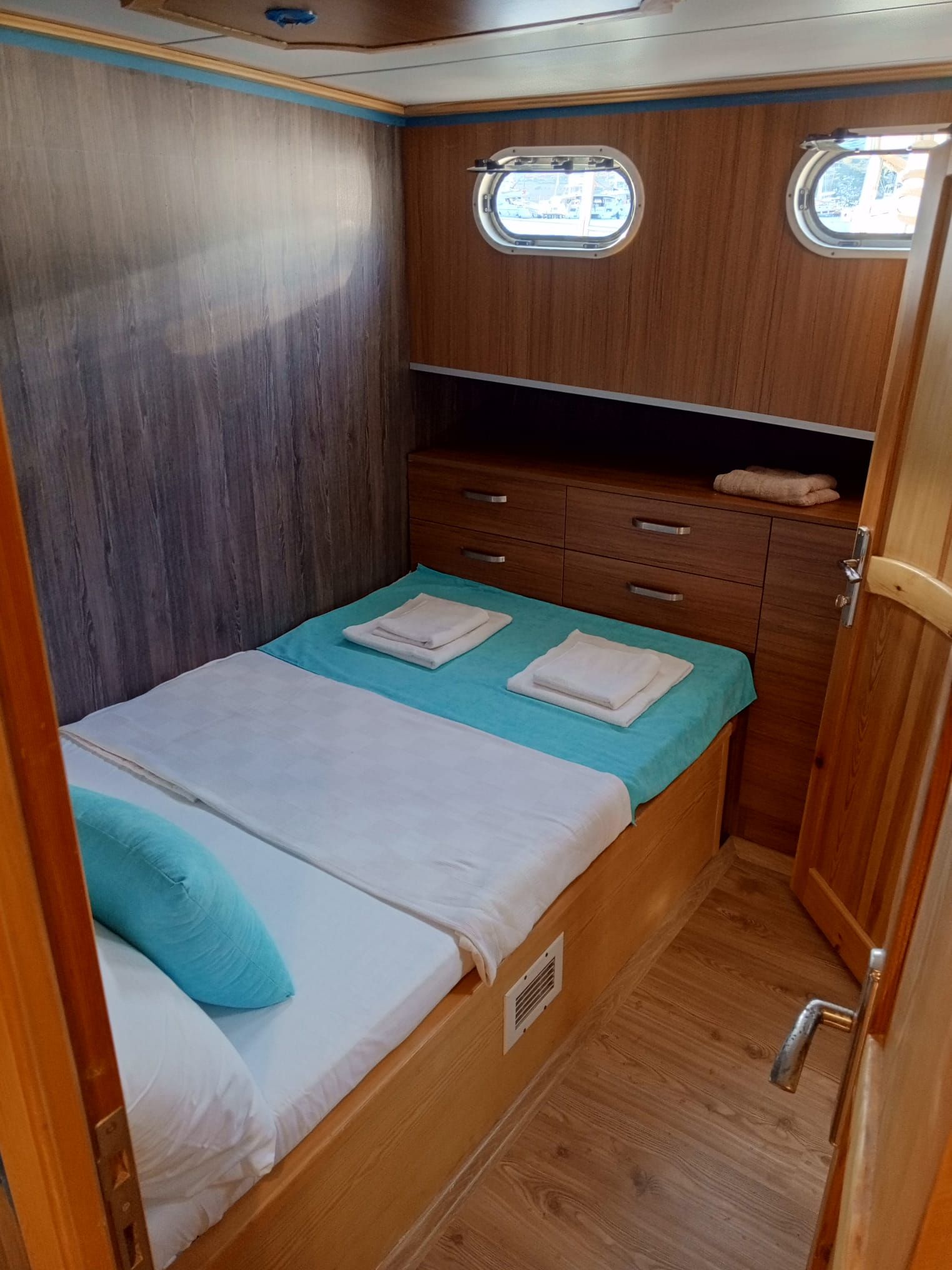 Der Innenbereich des Schiffes umfasst einen gemütlichen Salon mit Essbereich, eine voll ausgestattete Kombüse und moderne Annehmlichkeiten wie Fernseher, DVD-/CD-Player, GPS, UKW-Funkgerät und WLAN. Während der Sommerkreuzfahrten steht Ihnen täglich fünf Stunden lang eine Klimaanlage zur Verfügung, die für zusätzlichen Komfort sorgt. Entspannen Sie sich auf geräumigen Sonnenliegen oder genießen Sie ein Essen im Freien im Schatten. Für alle Wassersportbegeisterten bietet die Gulet Junior Irfan eine Vielzahl an Aktivitäten, darunter ein Beiboot mit Außenbordmotor, ein Kanu, ein Stand-Up-Paddleboard, Schnorchelausrüstung und Angelausrüstung. Das Schiff verfügt über einen 265 PS starken Motor, einen 12-kVA-Generator und erreicht eine Reisegeschwindigkeit von 8 Knoten. So ist eine zuverlässige Leistung für eine ruhige Fahrt über das türkisfarbene Wasser garantiert. Mit einer Breite von 4,45 m bietet sie Stabilität und Geräumigkeit und ist damit die ideale Wahl für Familien oder Freundesgruppen. Die Gulet Junior Irfan startet in Göcek und Fethiye und lädt Sie ein, versteckte Buchten, ruhige Ankerplätze und die atemberaubenden Inseln der türkischen Südwestküste zu entdecken – eine Kombination aus Tradition, Komfort und unvergesslichen maritimen Abenteuern.