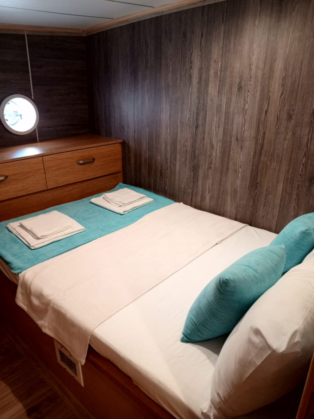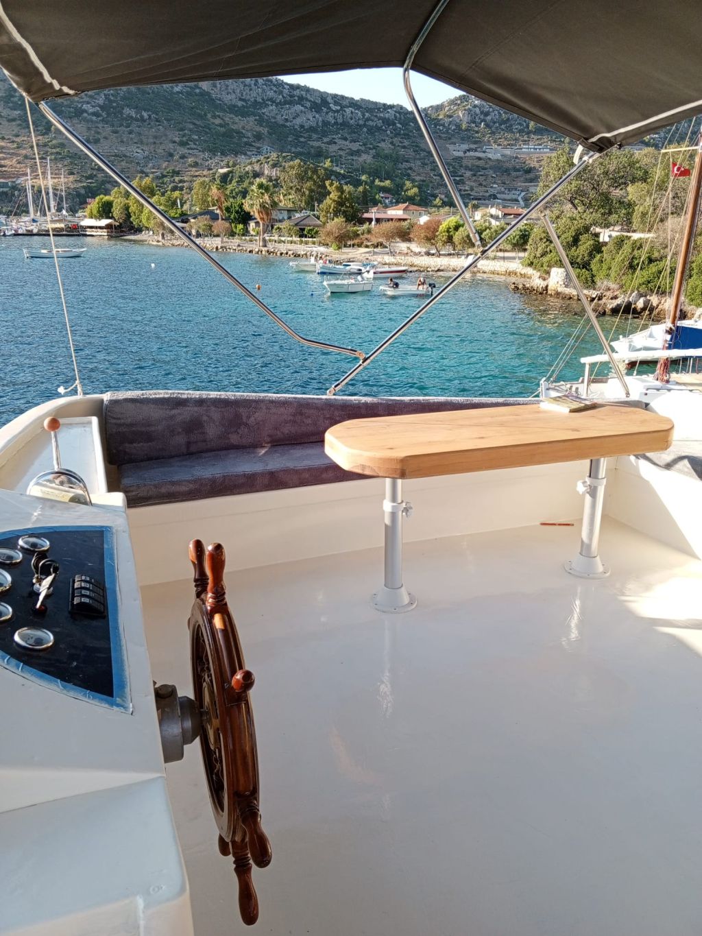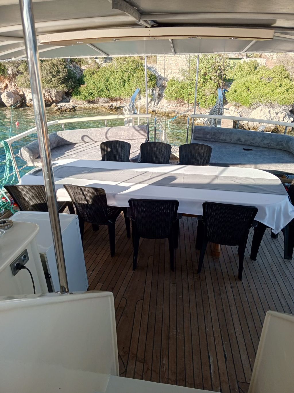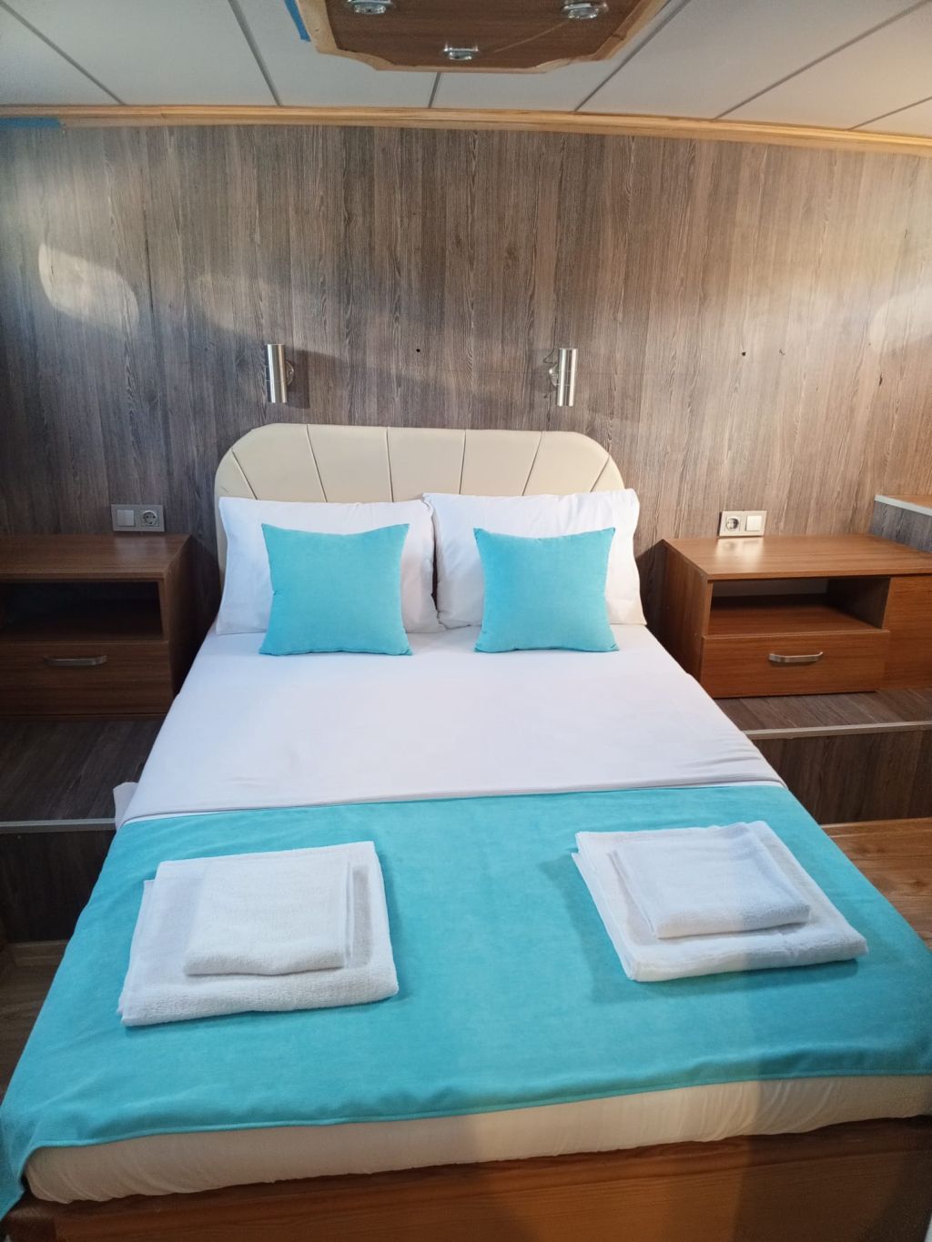 Der Innenbereich des Schiffes umfasst einen gemütlichen Salon mit Essbereich, eine voll ausgestattete Kombüse und moderne Annehmlichkeiten wie Fernseher, DVD-/CD-Player, GPS, UKW-Funkgerät und WLAN. Während der Sommerkreuzfahrten steht Ihnen täglich fünf Stunden lang eine Klimaanlage zur Verfügung, die für zusätzlichen Komfort sorgt. Entspannen Sie sich auf geräumigen Sonnenliegen oder genießen Sie ein Essen im Freien im Schatten. Für alle Wassersportbegeisterten bietet die Gulet Junior Irfan eine Vielzahl an Aktivitäten, darunter ein Beiboot mit Außenbordmotor, ein Kanu, ein Stand-Up-Paddleboard, Schnorchelausrüstung und Angelausrüstung. Das Schiff verfügt über einen 265 PS starken Motor, einen 12-kVA-Generator und erreicht eine Reisegeschwindigkeit von 8 Knoten. So ist eine zuverlässige Leistung für eine ruhige Fahrt über das türkisfarbene Wasser garantiert. Mit einer Breite von 4,45 m bietet sie Stabilität und Geräumigkeit und ist damit die ideale Wahl für Familien oder Freundesgruppen. Die Gulet Junior Irfan startet in Göcek und Fethiye und lädt Sie ein, versteckte Buchten, ruhige Ankerplätze und die atemberaubenden Inseln der türkischen Südwestküste zu entdecken – eine Kombination aus Tradition, Komfort und unvergesslichen maritimen Abenteuern.