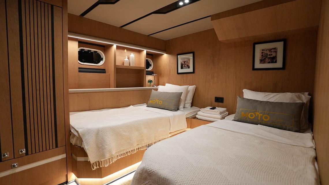 Die Motto ist eine 23,95 Meter lange, moderne und elegante Gulet, die 2023 gebaut wurde, um ein komfortables und stilvolles privates Gulet-Erlebnis entlang der türkischen Küste zu bieten. Mit 4 Kabinen (2 Master, 1 Doppelzimmer, 1 Zweibettzimmer) für bis zu 8 Gäste ist sie die ideale Wahl für Familien und kleine Gruppen, die einen entspannten und erstklassigen Blue Cruise-Urlaub in der Türkei verbringen möchten. Jede Kabine verfügt über eine Klimaanlage, ein eigenes Bad und moderne Designelemente für maximalen Komfort während Ihrer Reise.
