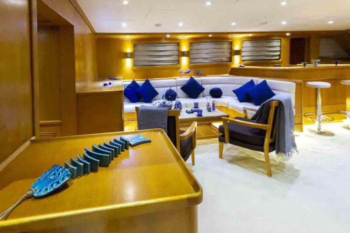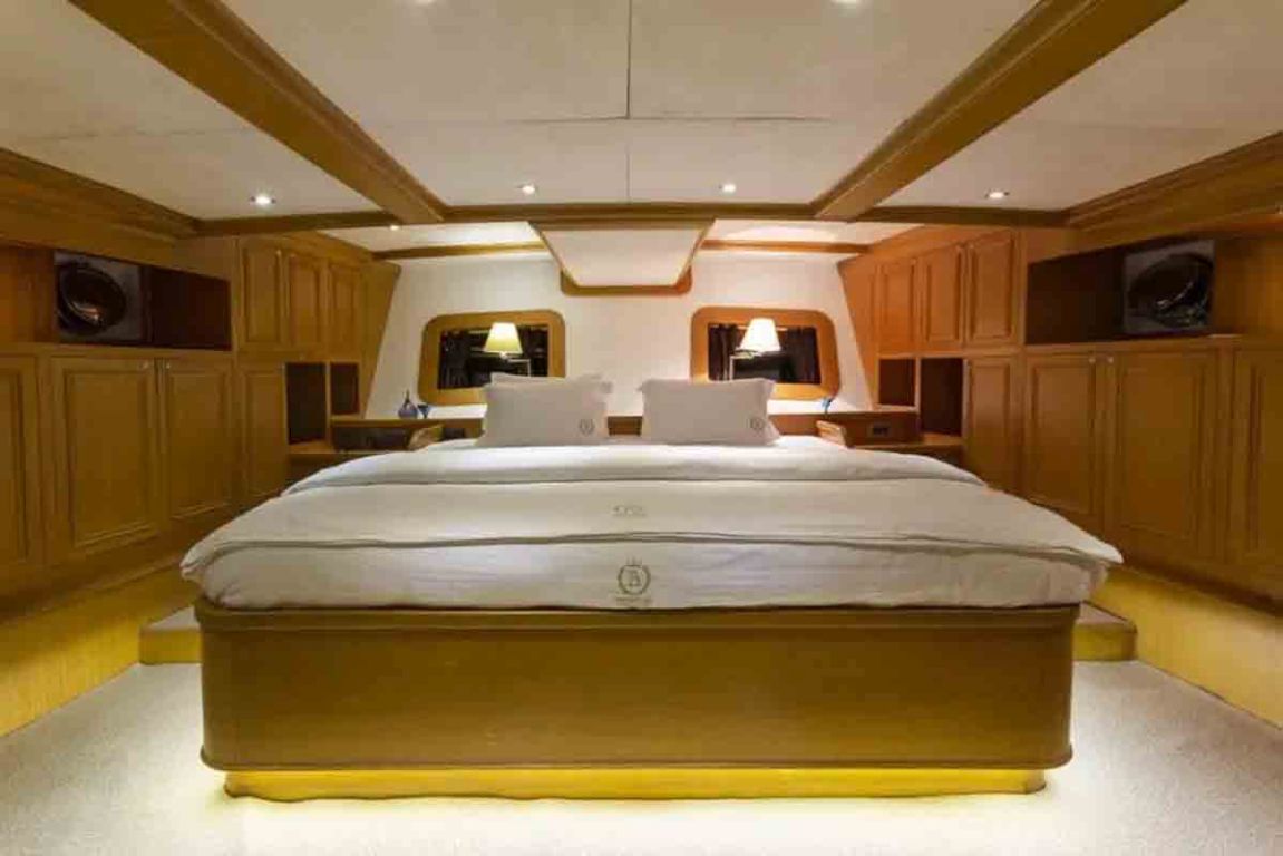 | Die Gulet Babylon ist eine 36 Meter lange Deluxe-Gulet, die 2013 gebaut und 2022 renoviert wurde, um höchsten Komfort zu bieten. Sie verfügt über fünf Kabinen – eine VIP-, eine Master- und drei Doppelkabinen – mit einer Gesamtkapazität von bis zu zehn Gästen. Die 8,30 Meter Breite sorgt für geräumige Innenräume und großzügige Außendecks. Das Deck bietet reichlich Platz zum Sonnenbaden, schattige Lounges und Essbereiche im Freien. Der elegante Salon ist mit einem Essbereich, bequemen Sitzgelegenheiten und einer voll ausgestatteten Küche versehen. Für Wassersportliebhaber bietet die Babylon eine große Auswahl: 100 PS Yamaha-Beiboot, Stand-up-Paddleboards, Wasserski, Wakeboard, Ringo, Kanu, Schnorchel- und Angelausrüstung. Die Yacht wird von zwei 440 PS MAN-Motoren angetrieben und durch 45 + 33 kVA Generatoren unterstützt, mit einer Geschwindigkeit von 12 Knoten. Klimaanlage: 18 Stunden pro Tag, Stromsysteme 12V/24V/220V. Die Gulet Babylon ist ideal für Gruppen, die auf ihrer Blauen Reise höchsten Luxus, Komfort und vielfältige Aktivitäten genießen möchten. |