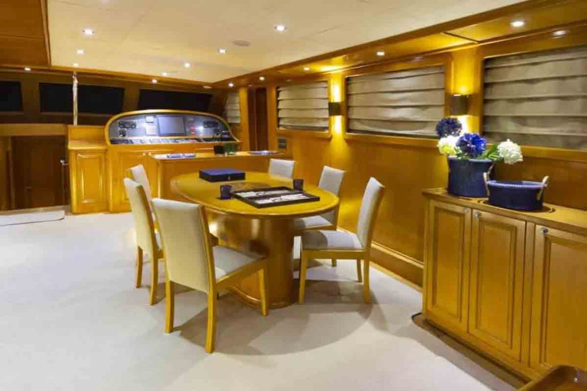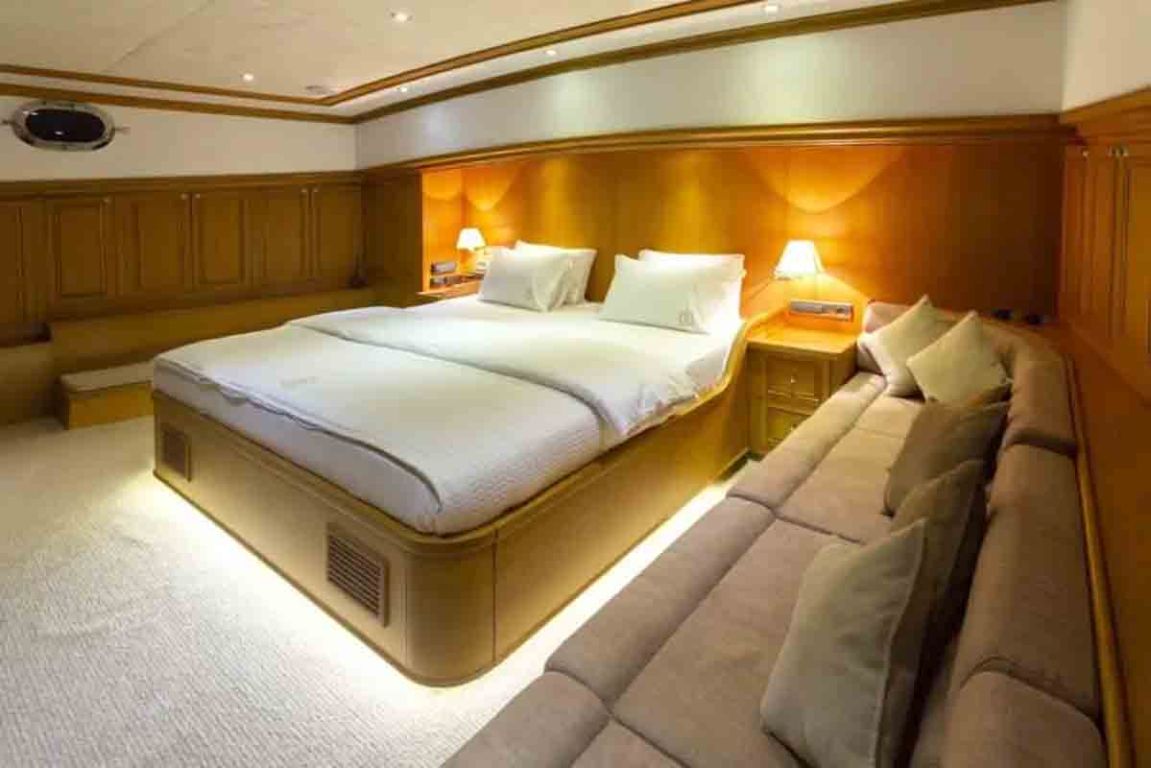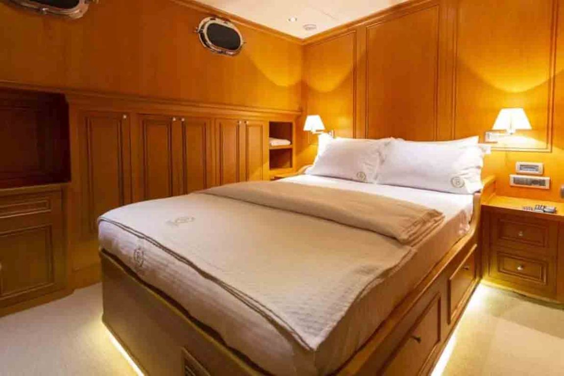 | Kapazität für bis zu 12 Gäste; 1 VIP, 1 Master, 3 Doppelkabinen, Duschkabine und Toiletten in allen Kabinen, separate Mannschaftskabinen. |