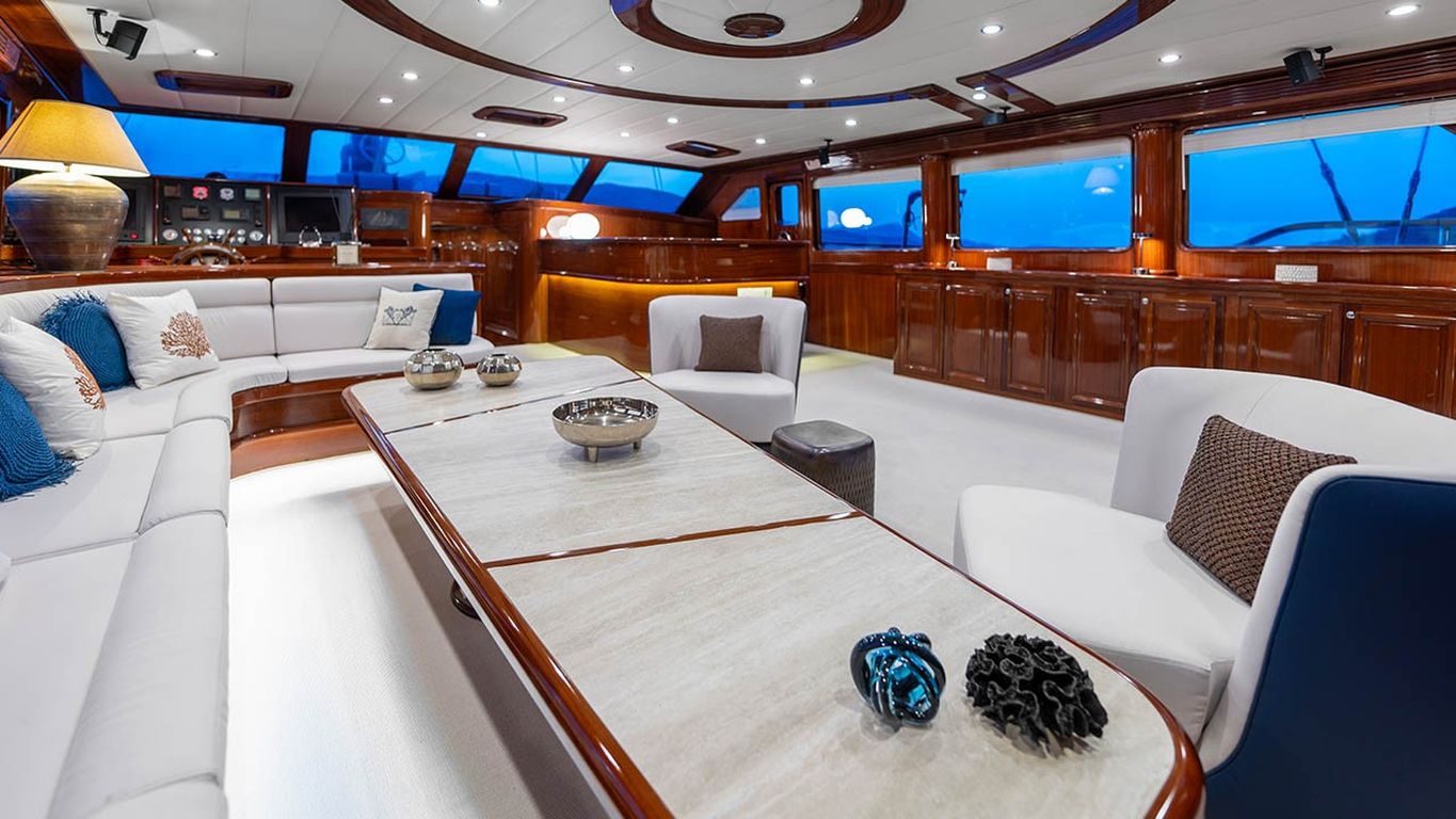 | Jusqu'à 12 personnes; 2 cabines principales, 3 cabines doubles, cabine de douche et toilettes dans toutes les cabines, cabines d'équipage séparées. |