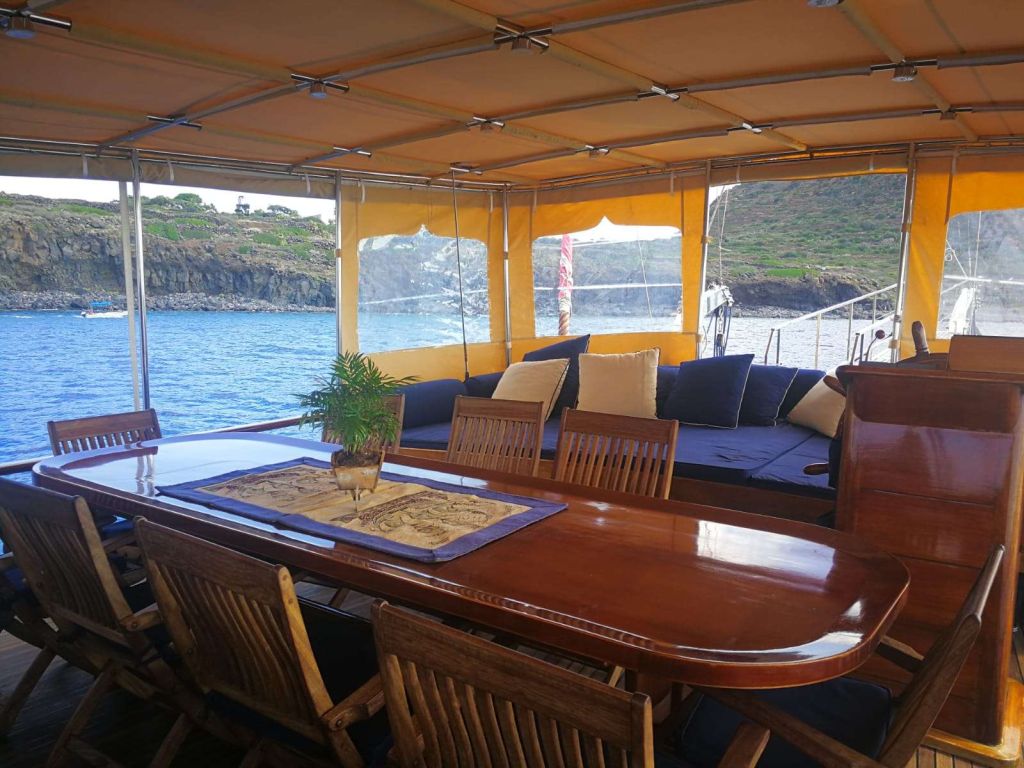 | Kapazität für bis zu 12 Gäste; 6 Doppelkabinen, Duschkabine und Toiletten in allen Kabinen, separate Crew-Kabinen. |