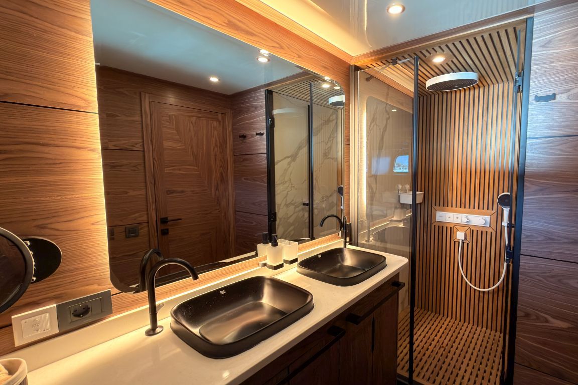 | Bis zu 12 Gäste; 1 Masterkabine, 4 Doppelkabinen, 1 Zweibettkabine, Klimaanlage, Kleiderschrank, Duschkabine und Toiletten wie zu Hause in allen Kabinen, separate Crewkabinen. |