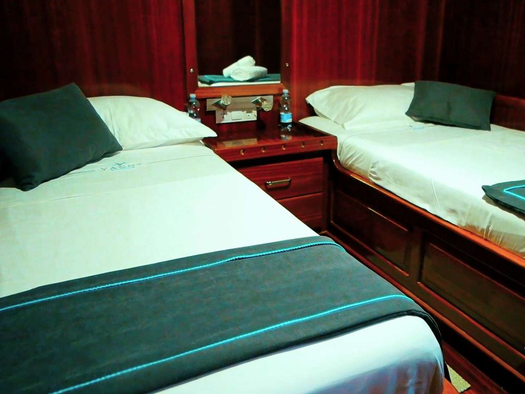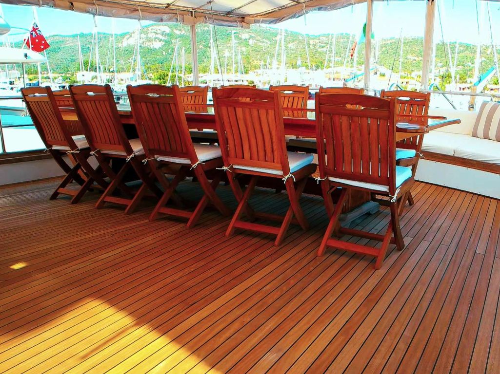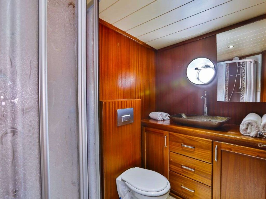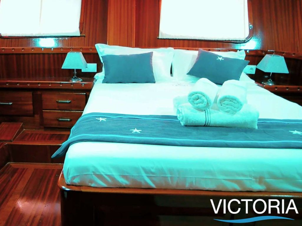 Bis zu 12 Gäste bequem, mit 2 Masterkabinen, 1 Zweibettkabine und 3 Doppelkabinen mit Duschkabine und eigener Toilette. |