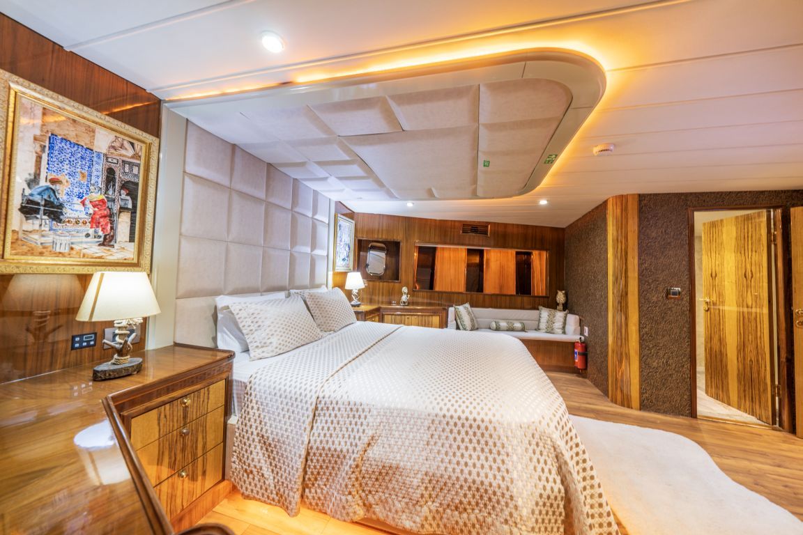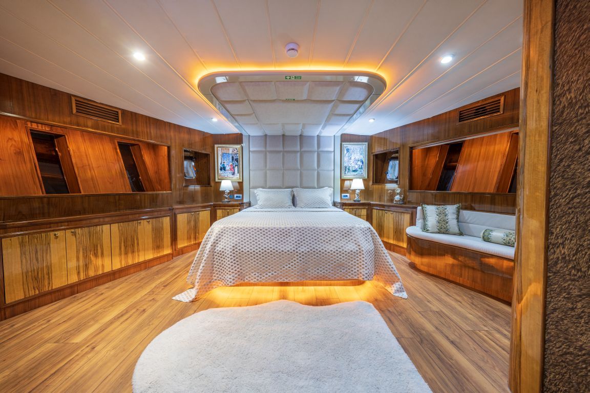 | Kapazität für bis zu 8 Gäste; 2 Master, 2 Doppelkabinen. Alle Kabinen sind mit Badezimmern, Klimaanlage und separaten Crewkabinen ausgestattet. |